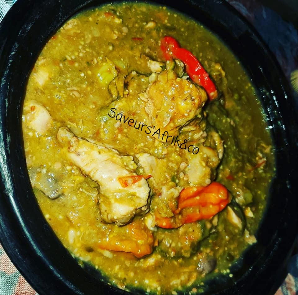 - Faites revenir dans une poêle les graines d’akpi et les écraser avec l’oignon restant, un piment sec dans un talier, puis ajouter à la sauce (apki ,oignon,piment sec) et laisser mijoter sans couvrir la marmite pendant 15 min. Rectifier l’assaisonnement. C’est prêt