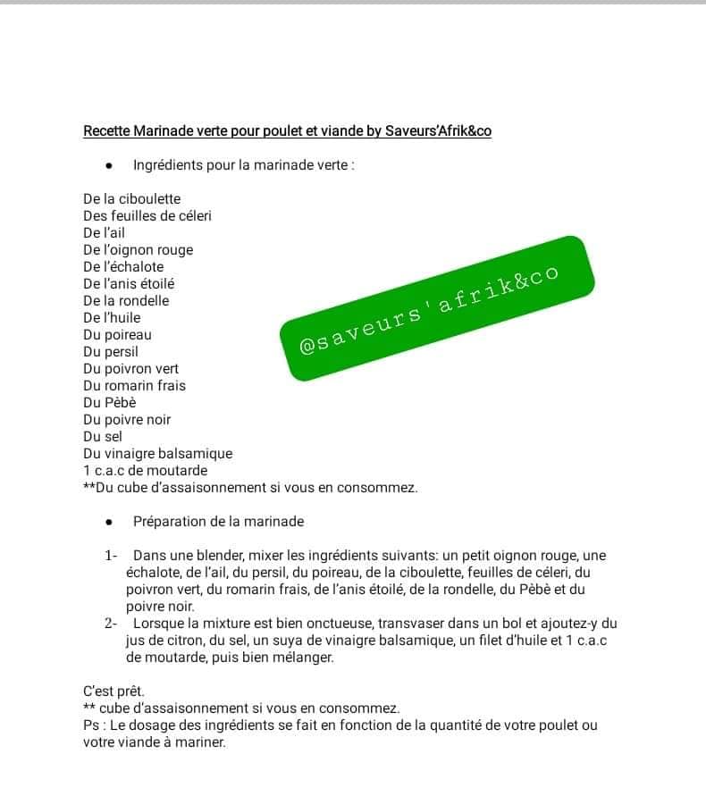 - Pour le piment vert: mixer des piments verts, persil, ciboulette poireau et faites revenir pendant 10 mkn à feu doux dans un cac d’huile. Ajouter poivre, pèbè, sel.