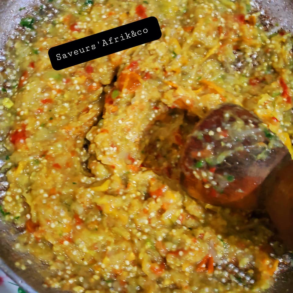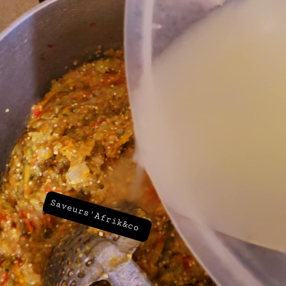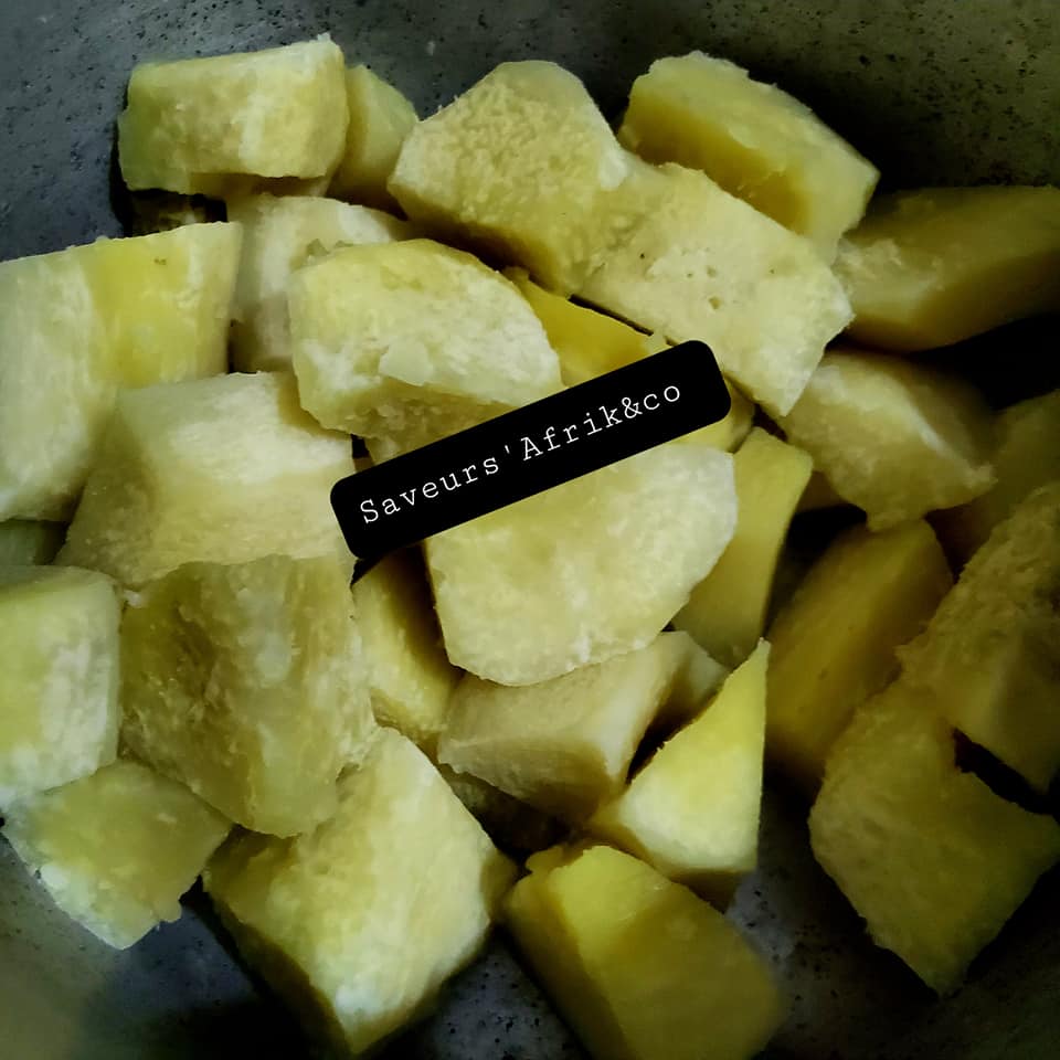 - Ajouter un peu de bouillon de l’igname, dans la pâte, saler et rectifier l’assaisonnement et laisser mijoter 5 min. C’est prêt