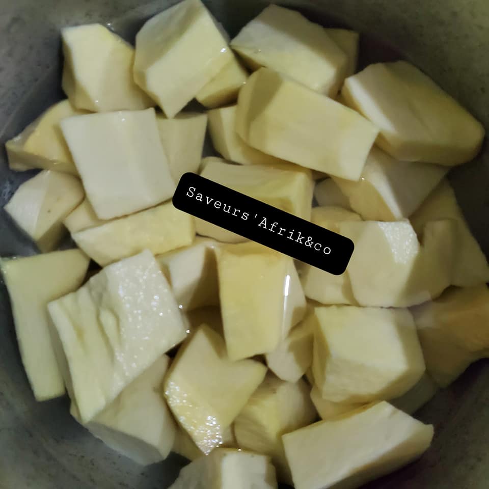 - Eplucher l’igname, découper en morceaux et laver les.
