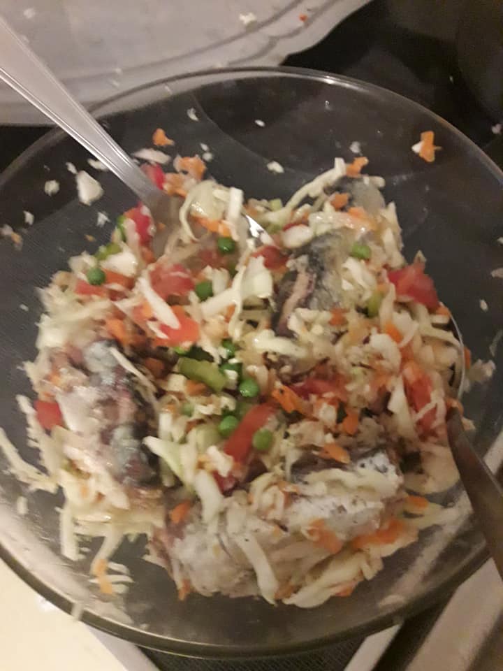 - Bien mélanger et ajoutez aux choux râpés et carottes. Ajouter la sardine. et déguster