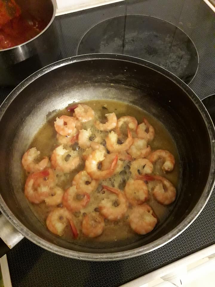 - Laver, décortiquer les crevettes et les réserver, hacher oignon, ail et persil, écraser le poivre.