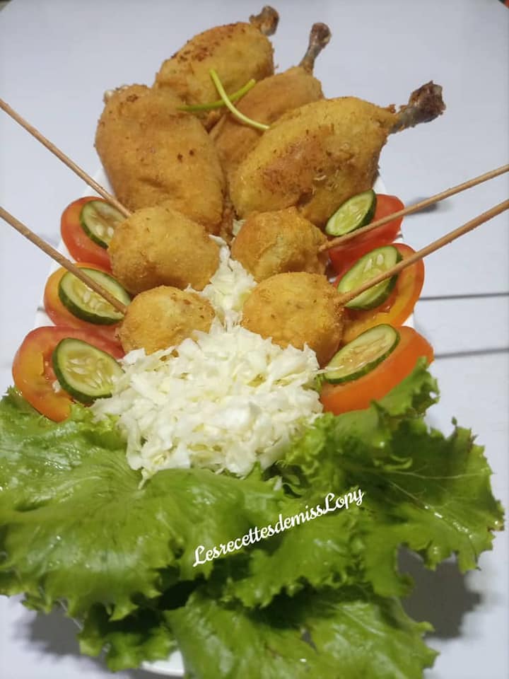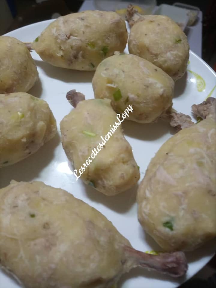 - Former des boules à l’instar des cuisses de poulet avec le mélange obtenu puis insérer chaque os réservé dans chaque boule afin de recréer de nouvelles cuisses de poulet. Former des boulettes avec le reste du mélange.