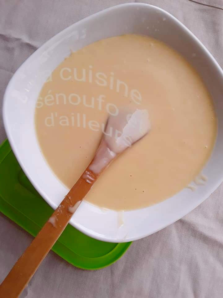 4. Quand tout le lait est mélangé, la pâte doit être assez fluide, si elle vous paraît trop épaisse, rajouter en peu de lait.