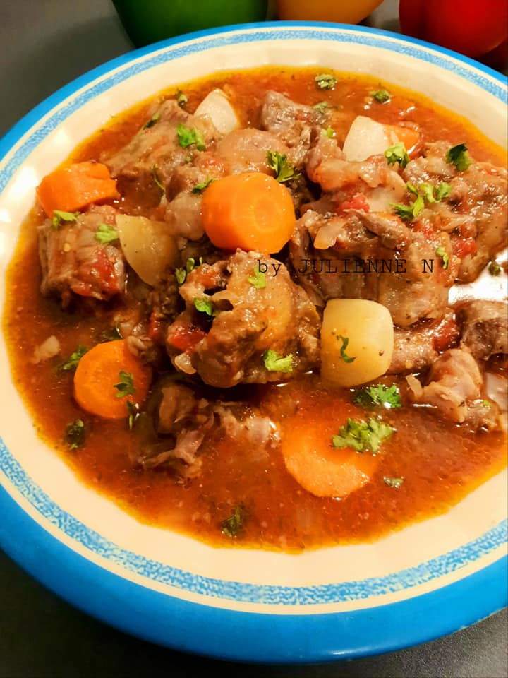 - Nettoyer les morceaux de queue de bœuf et les assaisonner avec la persillade, le citron, le sel et le poivre.