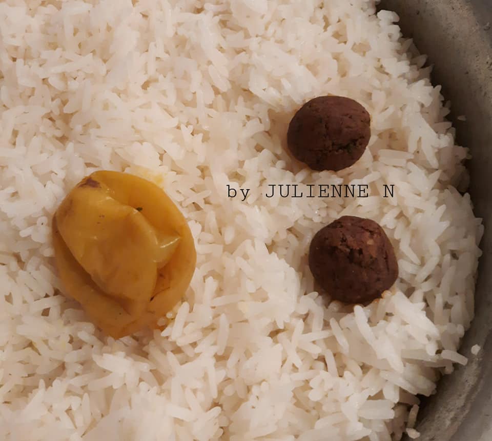- Faire cuire à part, la quantité de riz pour 2 personnes et au moment de couvrir le riz pour finir sa cuisson, poser par-dessus, l’aubergine africaine et le nététou, si souhaité.