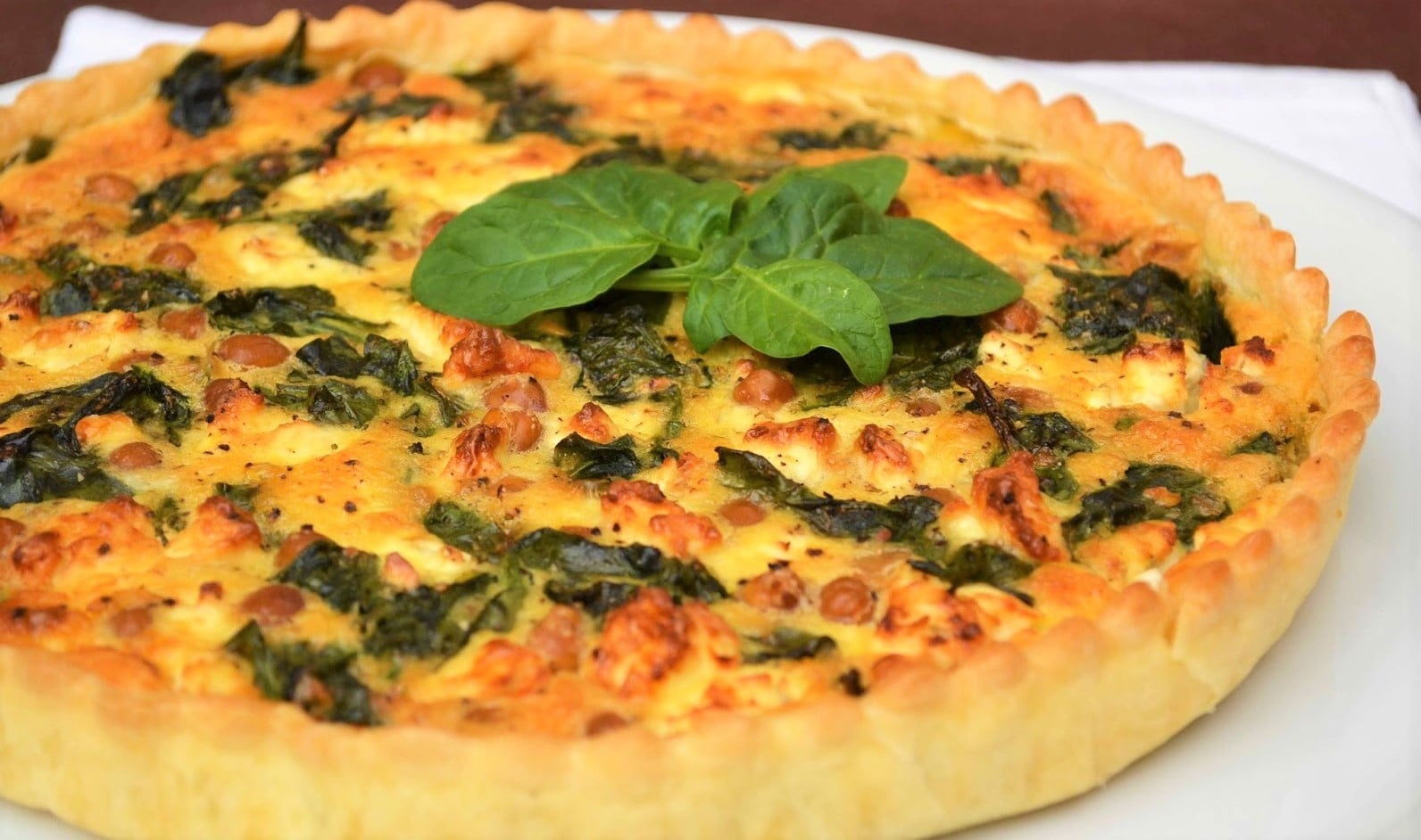 - Garnissez un moule à quiche ou à tarte avec la pâte brisée et étalez-y les épinards.