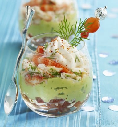 - Décortiquez les crevettes et la queue de homard, puis coupez celle-ci en petits morceaux et ajoutez l’ensemble sur l’avocat. Lavez, séchez et effeuillez l’aneth. Réservez 6 jolies pluches et ciselez le reste. Montez la crème liquide salée en une chantilly bien ferme.