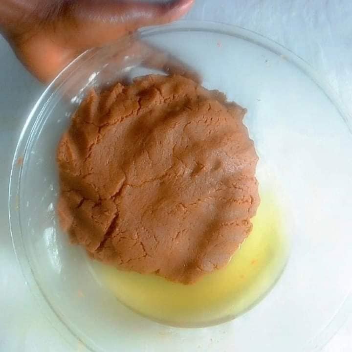 - Dès que ce mélange après travail devient une boule bien compacte et que l’huile est complètement sortie, séparez là de la pâte.