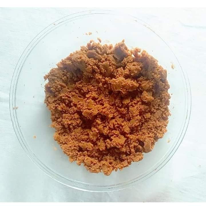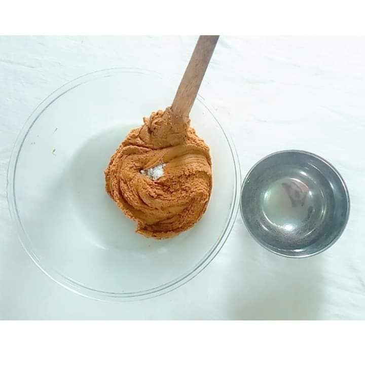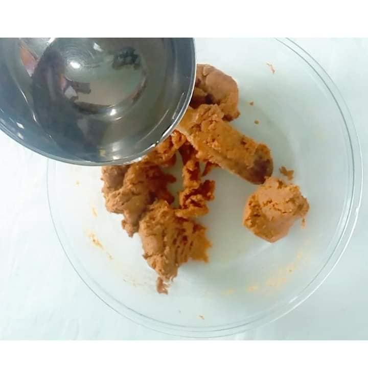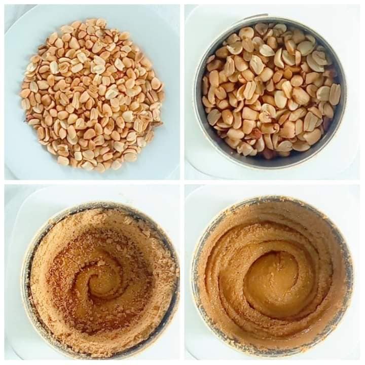 - Malaxez bien pour obtenir la pâte d’arachide en rajoutant de temps à autre une toute petite quantité d’eau tiède.