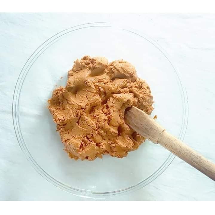 - Après un bout de temps vous verrez l’huile qui commence à sortir du beurre vous laissant un mélange assez dure à travailler.