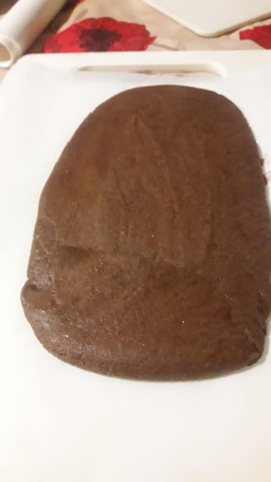 - Mettre la farine au réfrigérateur pour 30mn, la verser dans un saladier, ajouter le reste des ingrédients, sauf la poudre de cacao, bien mélanger jusqu’à avoir une pâte lisse non collante, si elle colle, ajouter unpeu de farine,former deux boules, teinter une avec la poudre de cacao,, mettre un film alimentaire et mettre au réfrigérateur pour 1h de temps