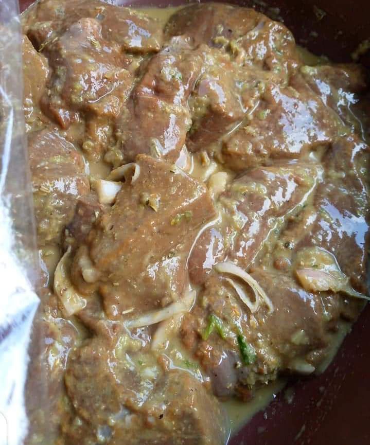 - Dans ma recette je met l’accent sur l’assaisonnement du foie marinade avec les épices et condiments en photo auxquels j’ajoute 1cc d’herbes de Provence et 1CSmoutarde( pour 1kilo et demi).