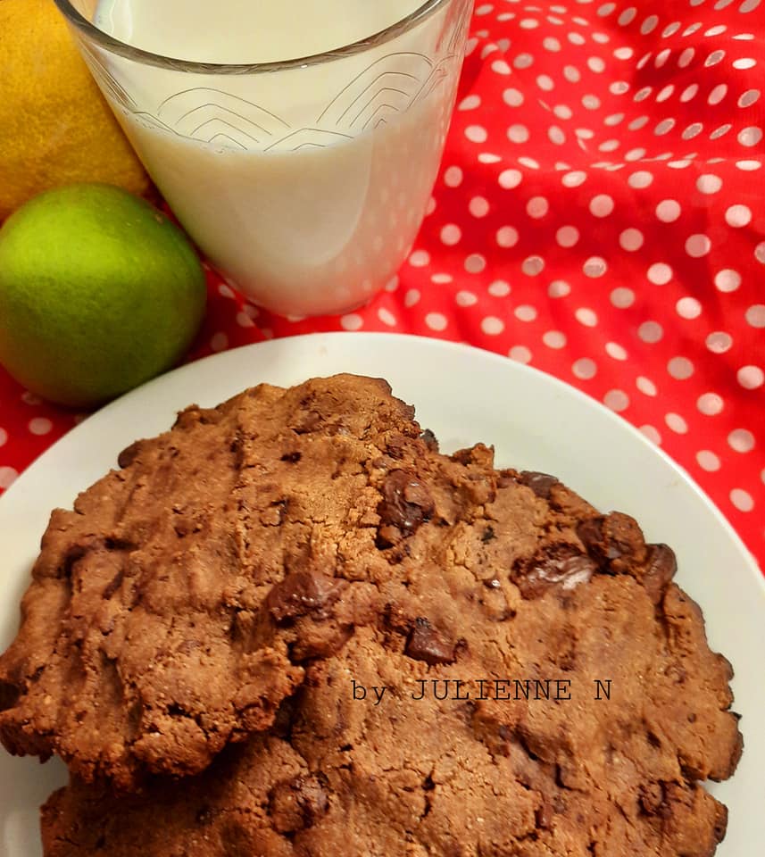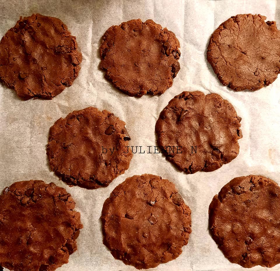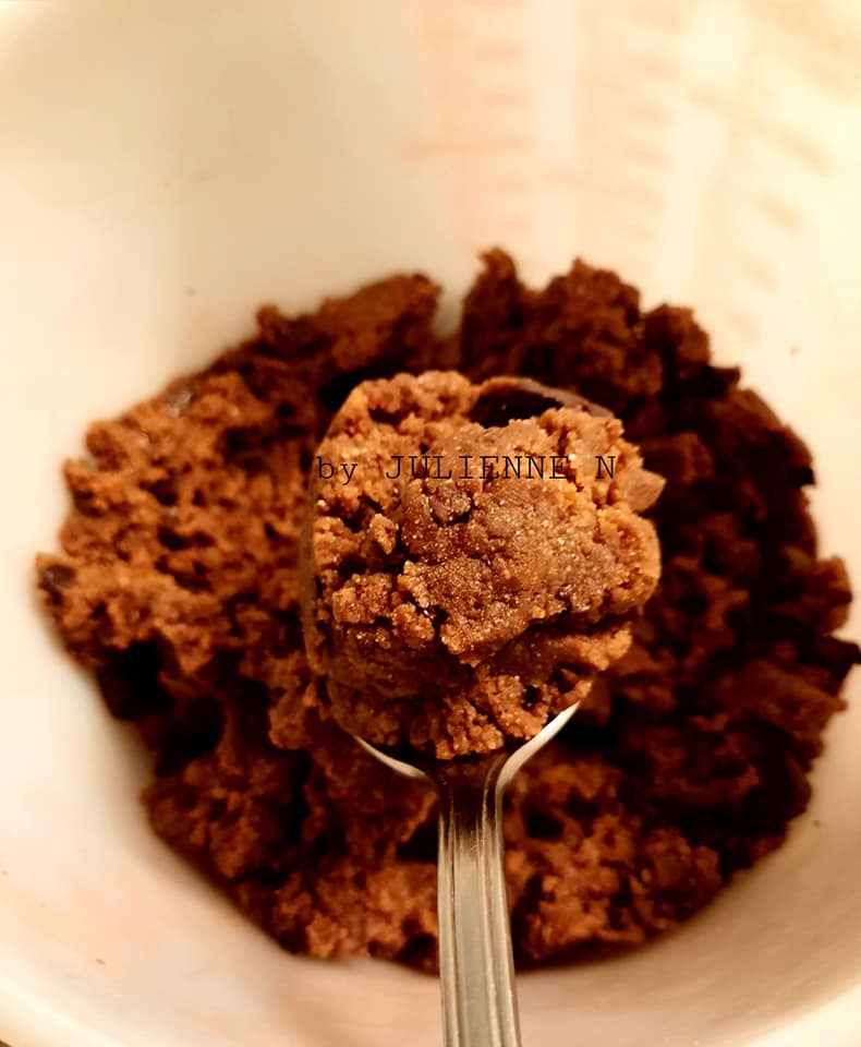 - Mélanger et à l’aide d’une cuillère à soupe, former les cookies sur la plaque puis les faire cuire à four chaud à 210°c(thermostat 7) pendant 10 minutes.