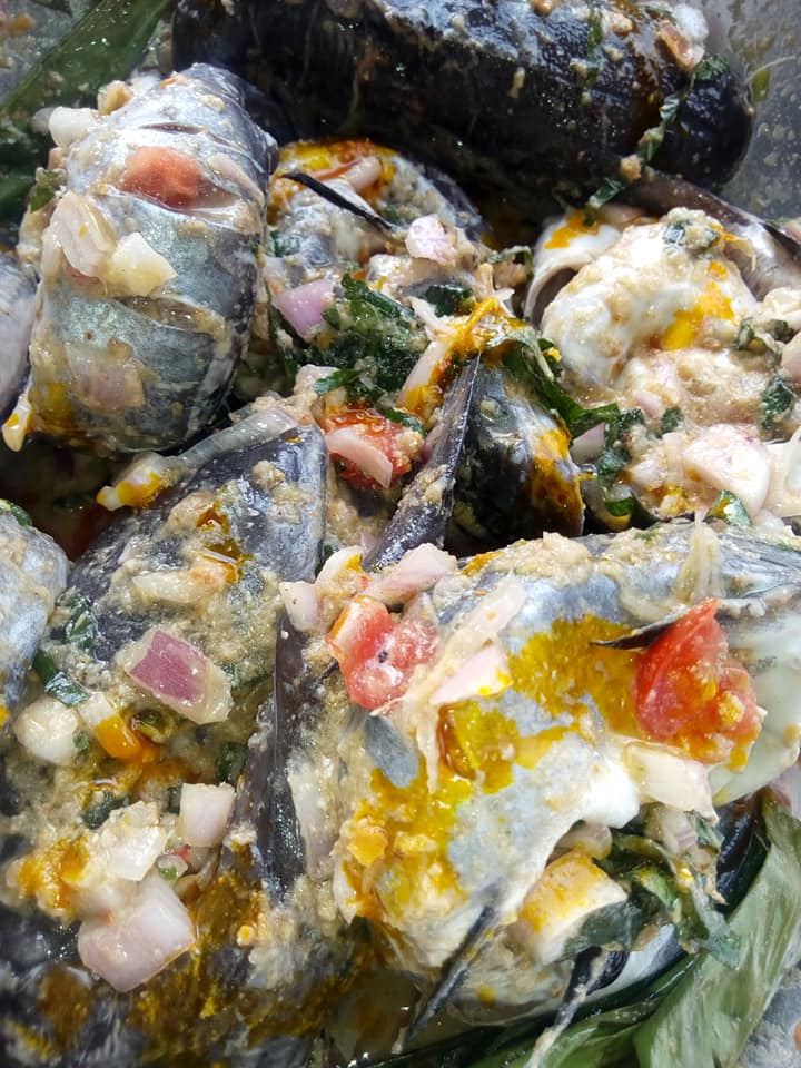 - Bien Mélanger les poissons avec ce mélange. versez un filet d’huile rouge au dessus pour une coloration villageoise (facultatif).Laissez reposer 2h minimum o frais