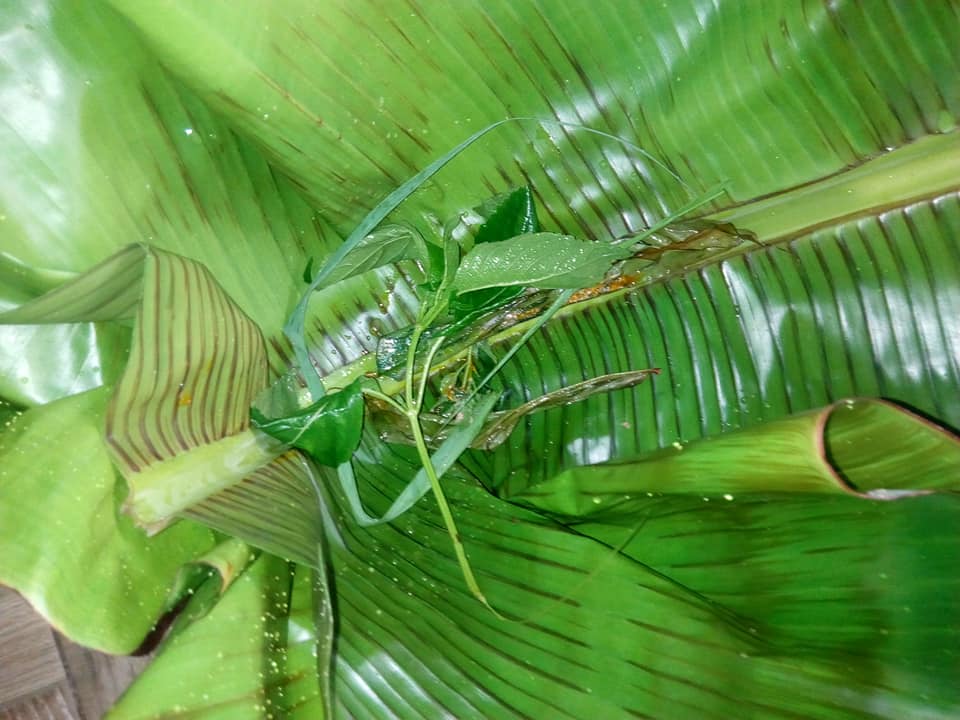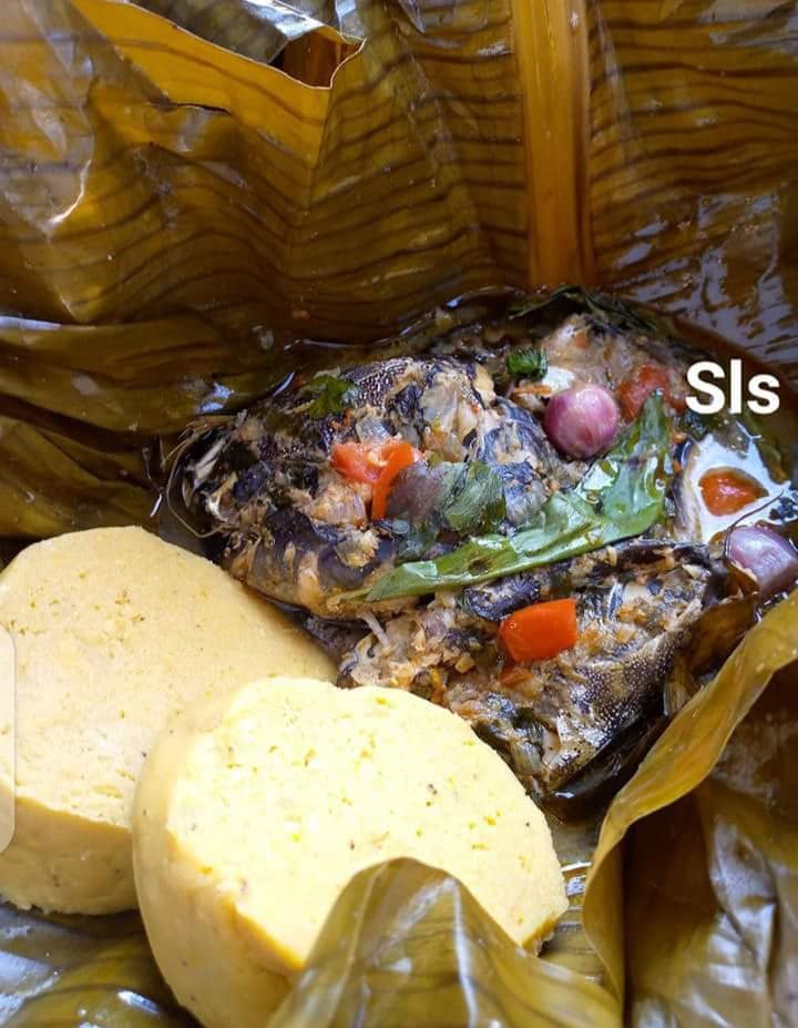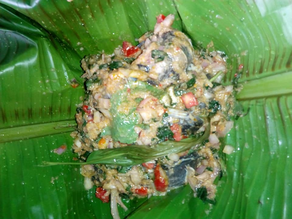 - Poser 2feuilles d’odjom dans chaque boule avec 3feuilles de massep(en bas et au dessus) N’oubliez pas de rajouter un peu de jus de marinade dans chaque paquet. bien emballer (pas de trou) .vous pouvez aussi lancer de touts petits oignons en entier.