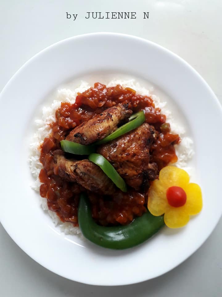 - Servir avec du riz, ou des pâtes, ou des toasts ou même en apéritif avec des chips, ou encore avec des pommes frites, ou simplement dans un pain pour un sandwich chaud avec garniture au choix, etc.