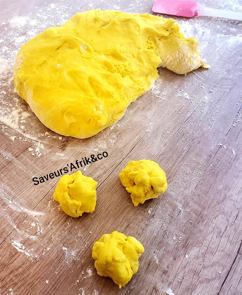 - Dégagez votre pâte avec la paume de votre main. Puis fariner votre plan de travail, déposez-y la pâte. Prenez des petites portions de la pâte et façonnez-les à votre guise.