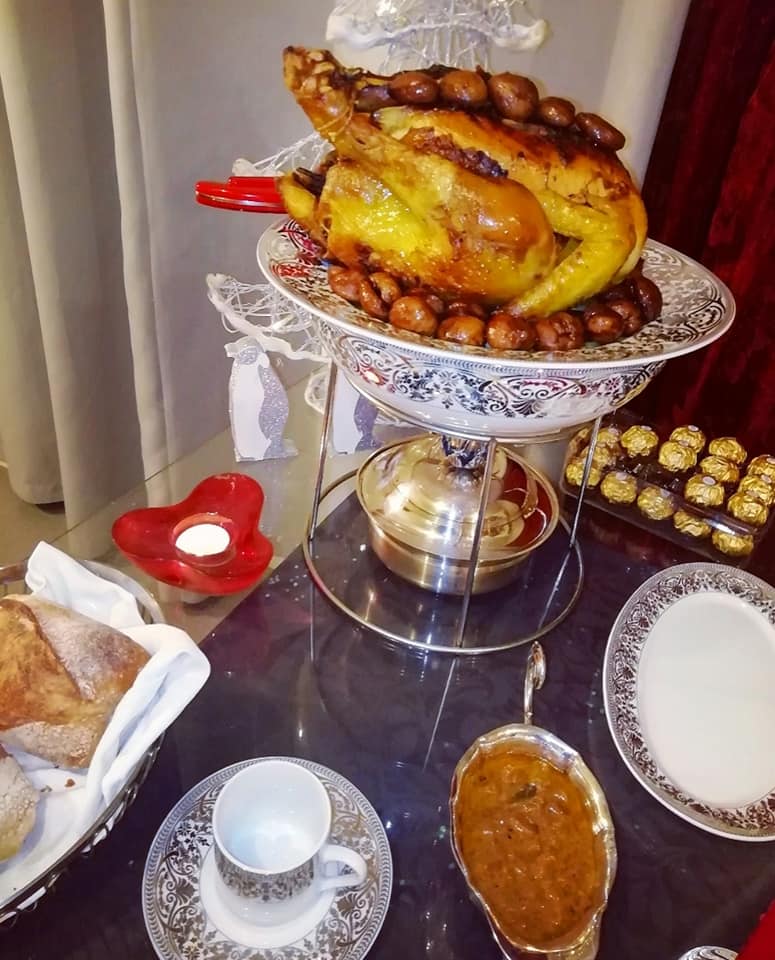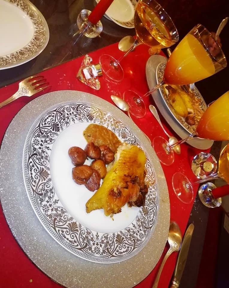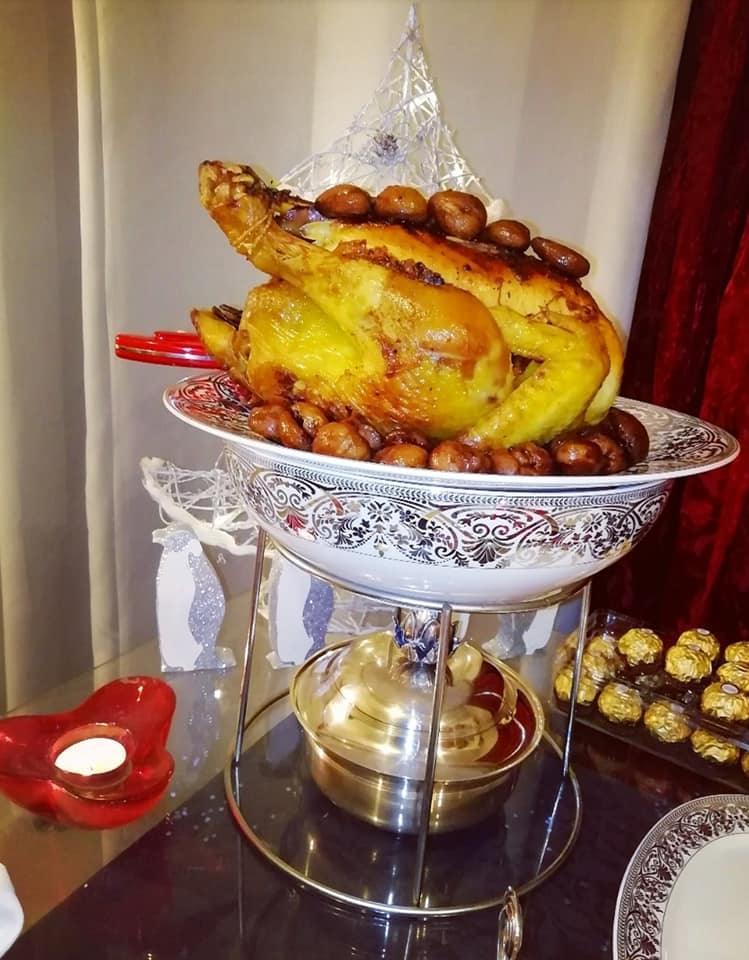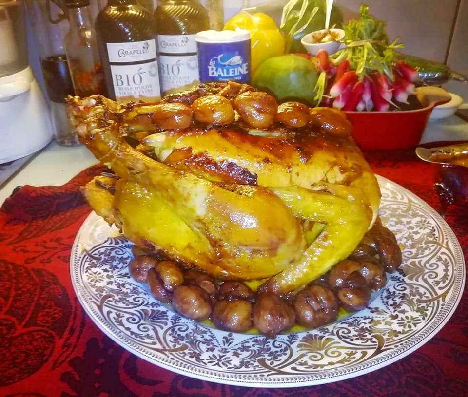 - C’est prêt, servir en les rangeant tout au tour du chapon et quelques-unes sur sa poitrine.
