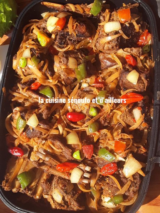 - Sauter les oignons en lamelles dans l’huile y ajouter le bouillon de la viande + du poivre + la poudre de gingembre.