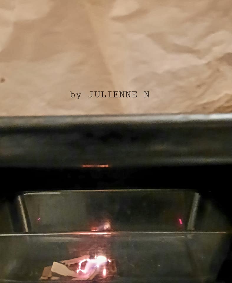 - 5 minutes avant la fin de cuisson, mettre 3 copeaux de bois et un peu de papier cuisson(1 carré de 5 cm, découpé en morceaux), à brûler dans un plat spécial four haut et allumer avec un briquet ou autre.