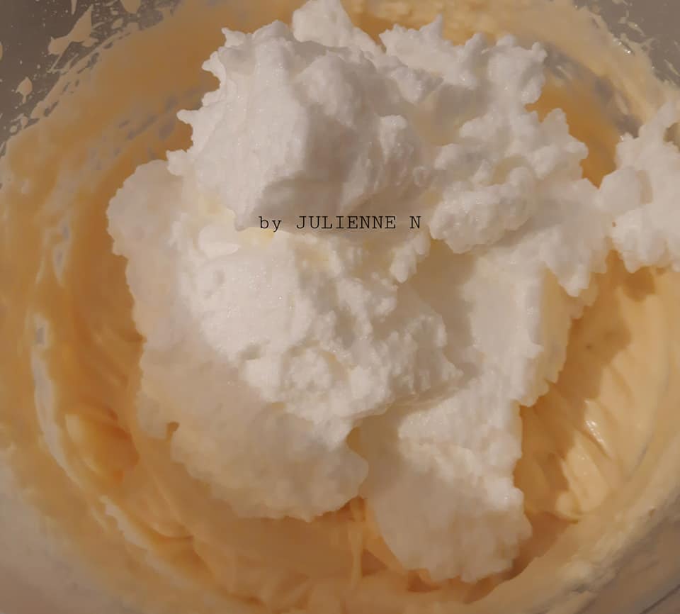 - Incorporer les blancs en neige ferme, dans l’appareil œufs/sucre et mascarpone, à l’aide d’une maryse, délicatement.