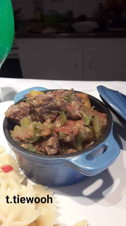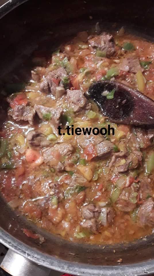 - Dans une sauteuse. Mettre une cuillère d’huile, faites dorer la viande ,ajouter les oignons et les ingrédients hachés, après 10mn de cuisson mettre le poivron sel et carotte,, ajouter 1/2verre d’eau et cuire jusqu’à évaporation de l’eau. Texture a juger selon votre convenance