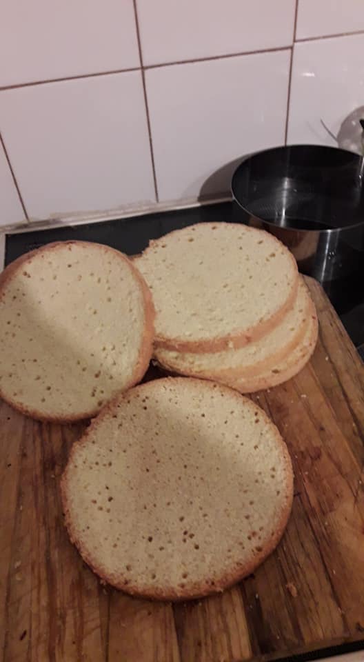- Mélanger farine maïzena et levure, monter les blanc en neige,ajouter les jaunes, le sucre, le lait , l’arôme et la farine et cuire a 160degre par la cuisson a surveiller.