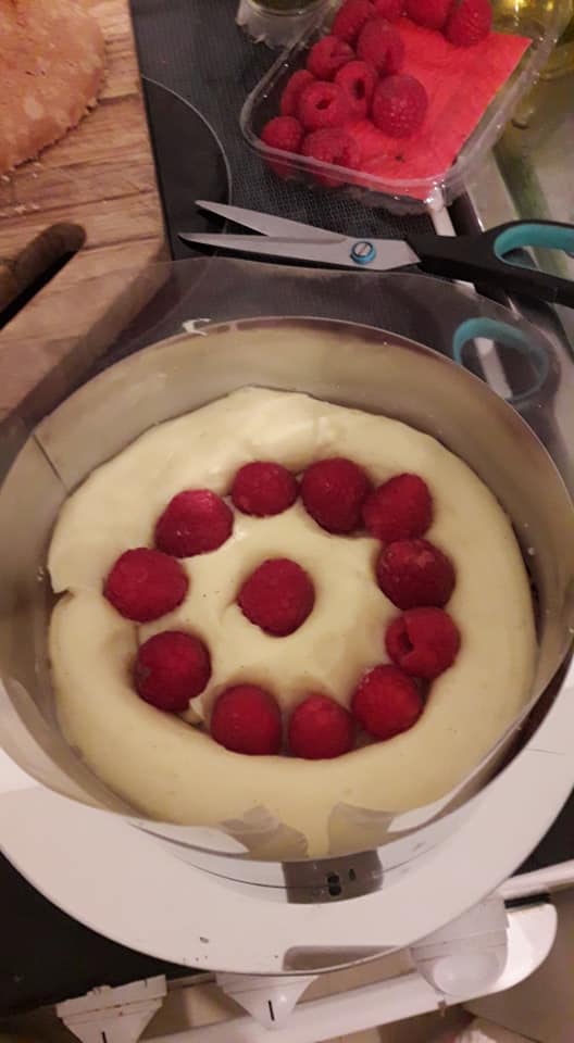 - J’ai utilisé un moule cercle ouvert, a défaut on peut utiliser un saladier transparent et le tapisser de film alimentaire.