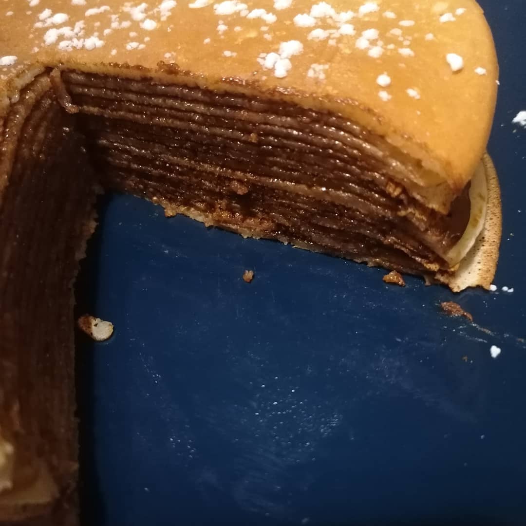 - Après la cuisson de chaque crêpe, étaler du Nutella dessus avant de poser une autre dessus, ainsi de suite.