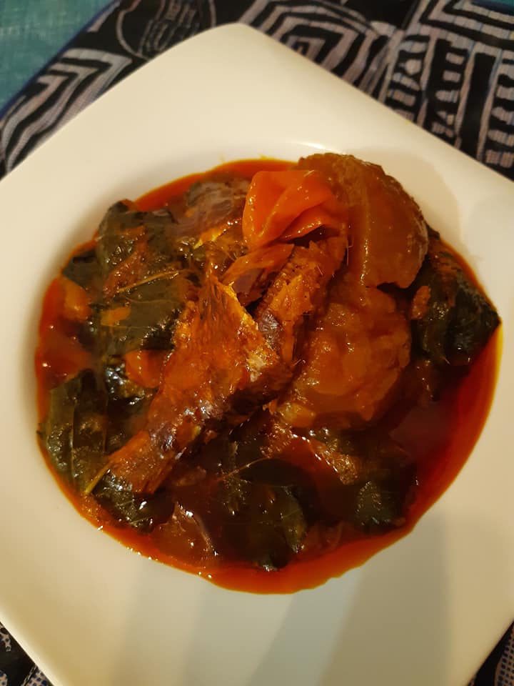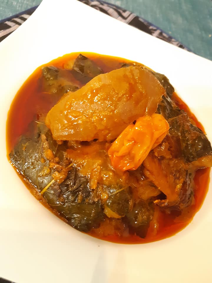 Ekwang revisité, a la base on utilise les feuilles de macabo. Mais pour pour celle ci j ai utilisé un légume généralement appelé folong
