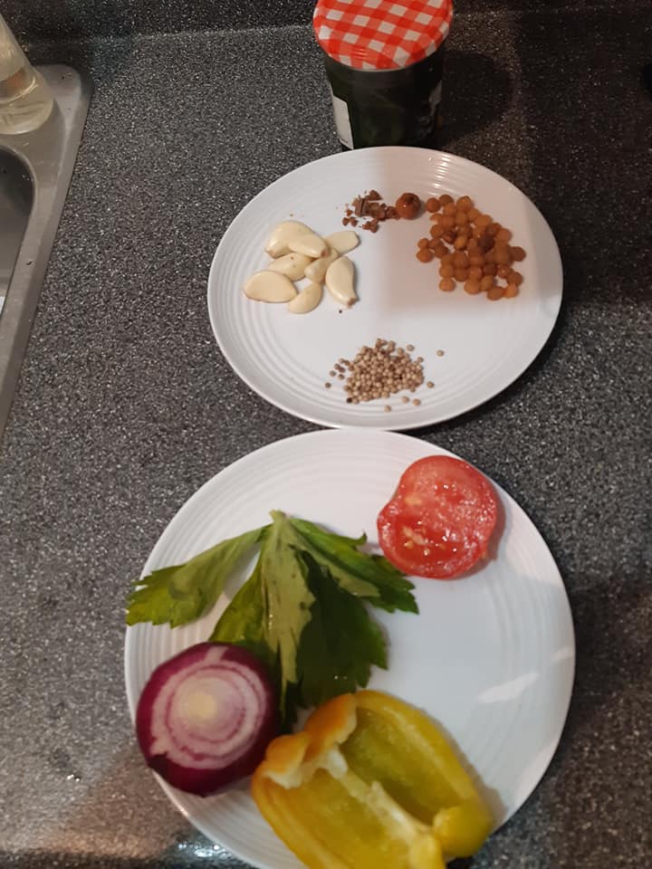 - Griller les épices dans une poêle pendant 5min à feu doux. Puis les mélanger aux autres condiments et écraser