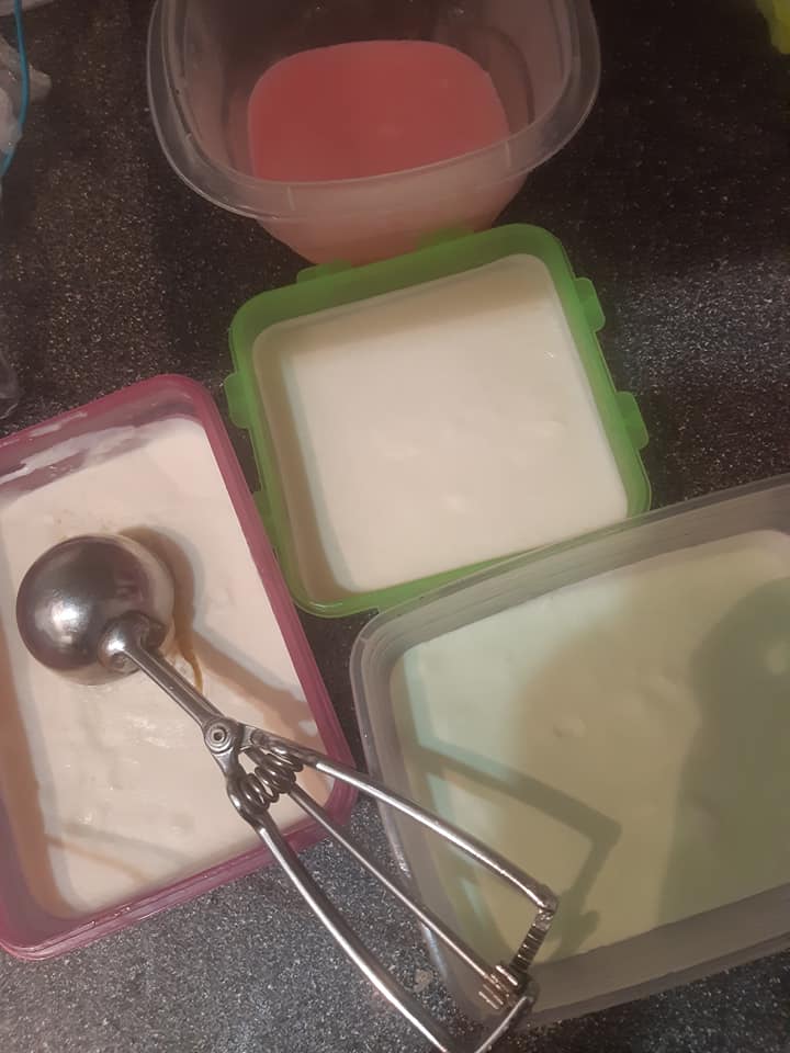 - Pour les autres ajouter arome et colorant et le blanc d’œuf (1cas pour chacun) a la fin