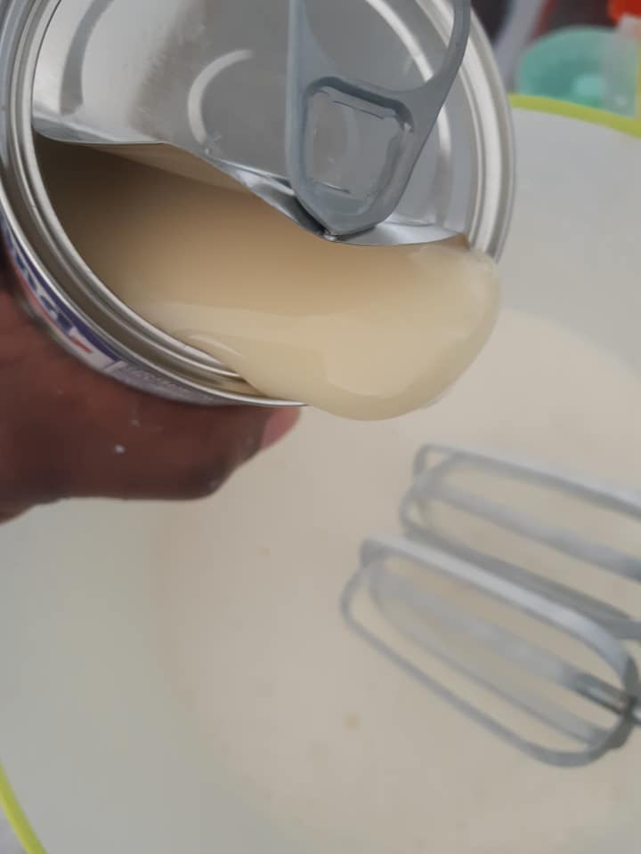 - Ajouter le lait concentré ( selon votre goût), et fouetter pour mélanger
