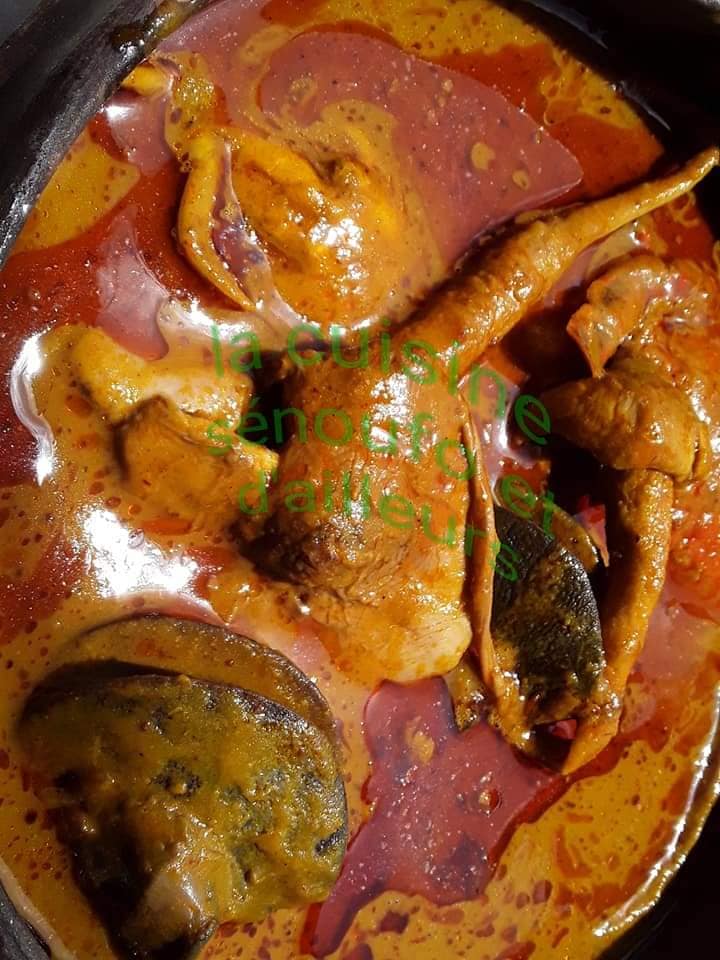 - Tamiser encore le jus des graines de palme dans une casserole et mettre au feu en y ajoutant les tomate+les oignons+ les piments frais.Lorsque la sauce bout bien torréfier votre adjuevan sur le feu et le mettre dans la sauce. 5mn après ajouter les escargots+du sel+ le kablet. Lorsque ça bout ajouter les champignons. Laisser bouillir pendant 40 mn et retirer vos légumes pour écraser .