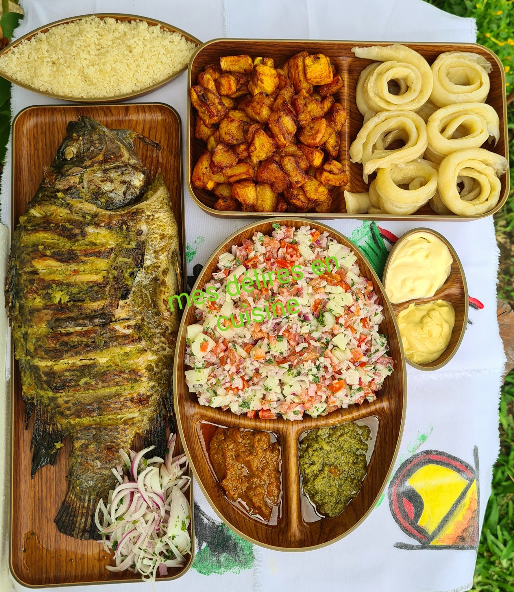 La carpe grillée est un plat savoureux qui combine des saveurs délicates et une texture parfaite. Accompagnée de ses invités tels que l'alloco, l'atiekè ou le miondo, elle promet une expérience culinaire inoubliable. Ajoutez une salade de crudités pour une touche de fraîcheur.