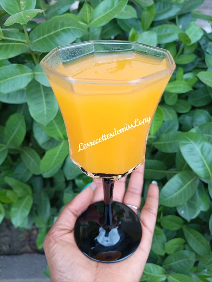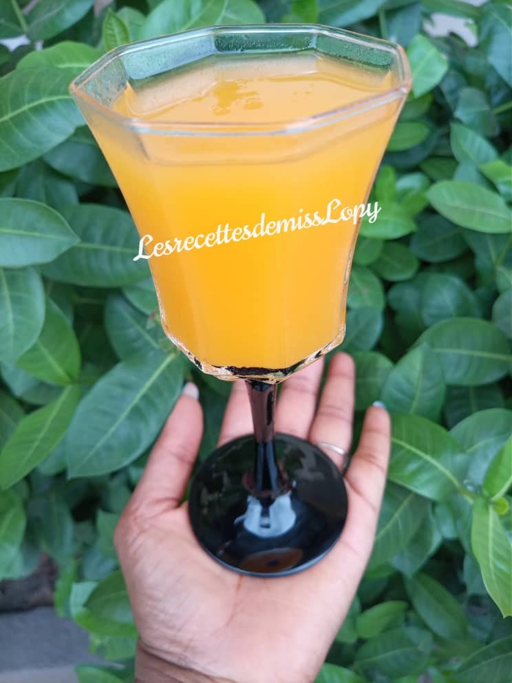 - Découpez la papaye et la mangue mixez avec un verre d’eau.