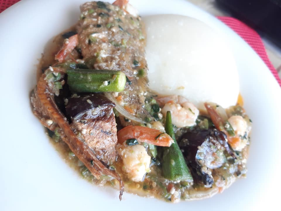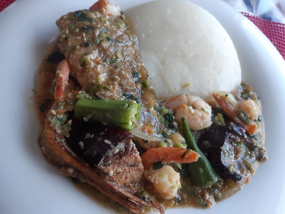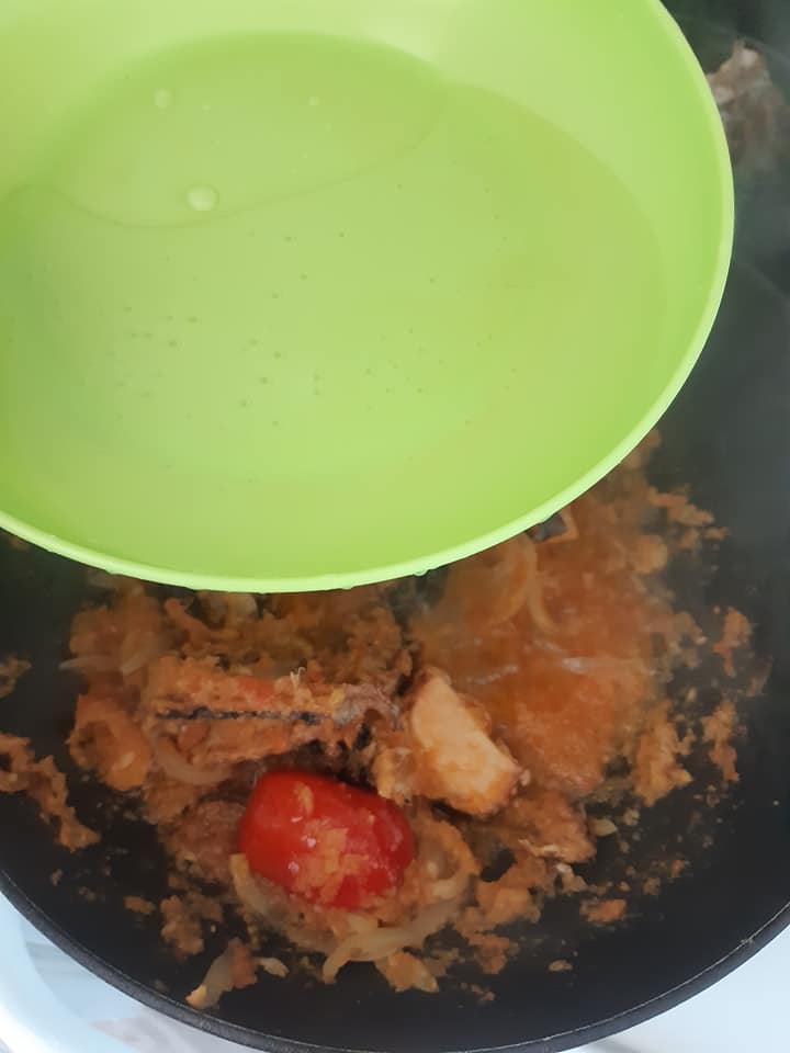 - Laisser l eau tarir puis ajouter les 250ml d eau et le mélange gombo et épinards puis le bars frit. Laisser cuire environ 12 minutes à feu doux