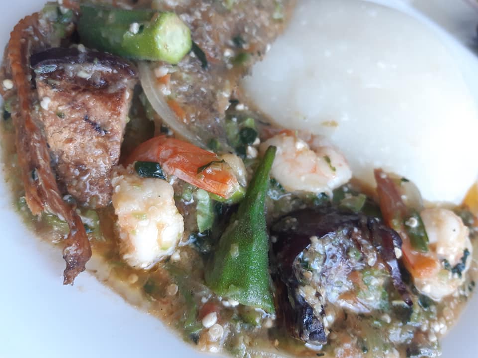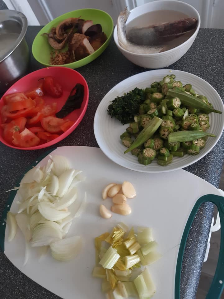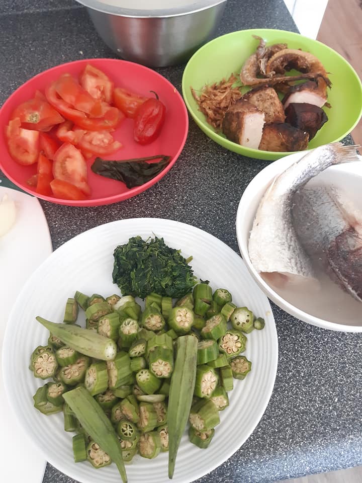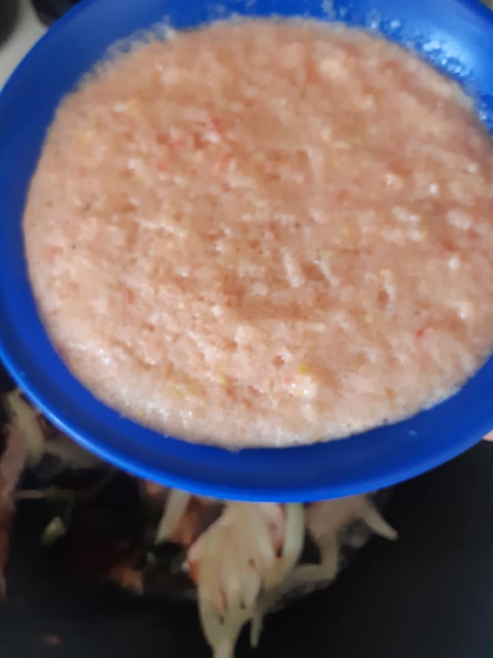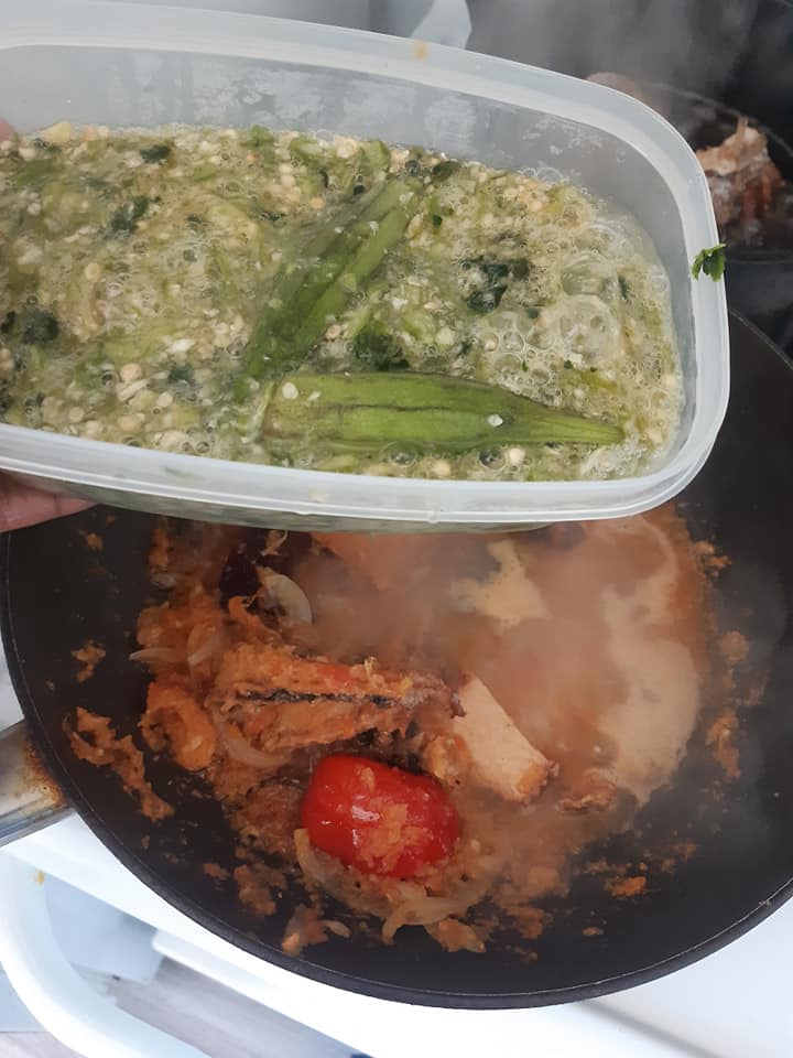 - Découper et écraser le gombo puis mélanger avec les épinards et une pincée de bicarbonate et réserver
