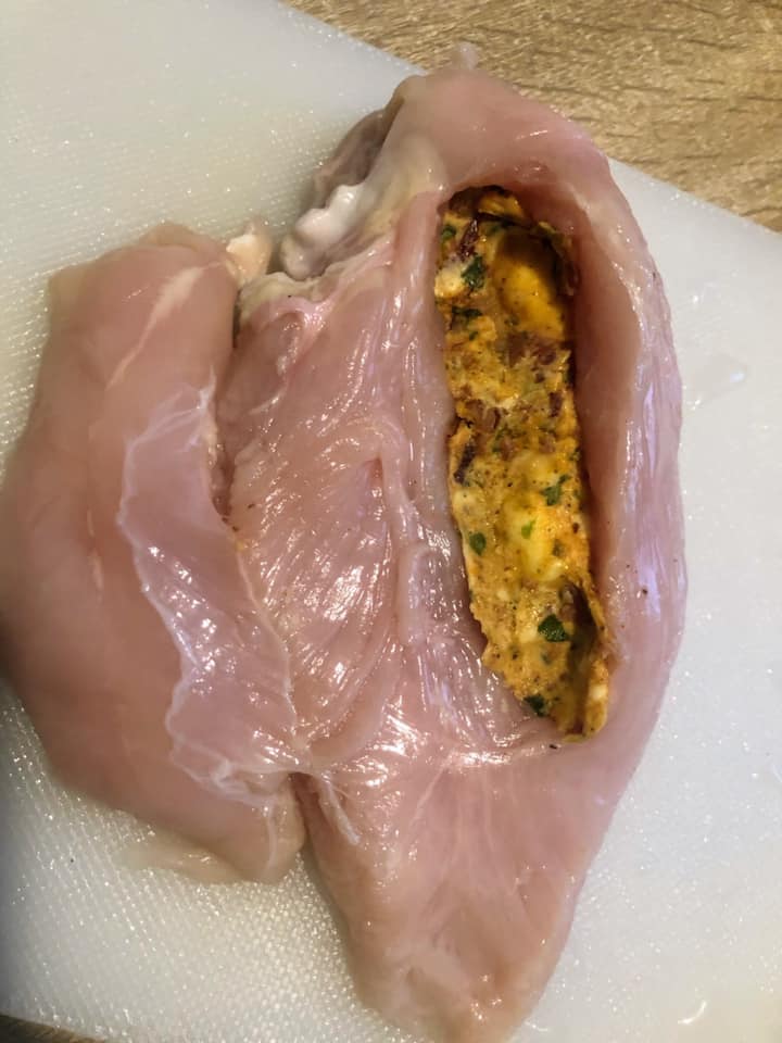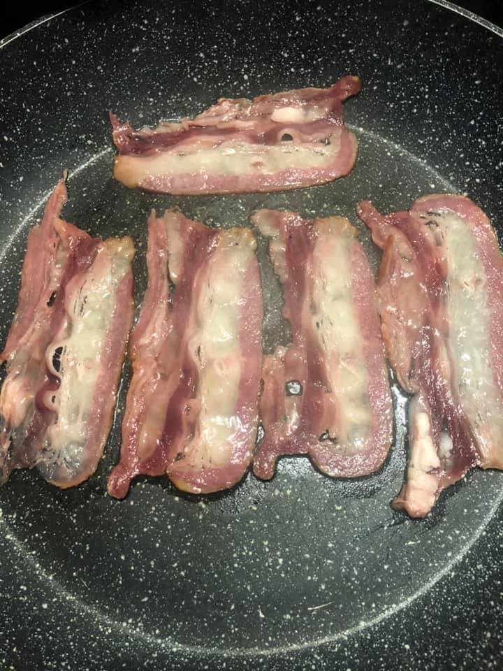 Faite cuire le bacon dans une poêle anti adhésif sans huile une fois cuit mettre sur du papier absorbant