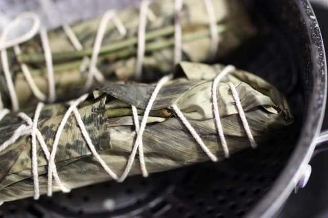 - Posez les pains de manioc sur le panier vapeur ou sur le revers de l’assiette.