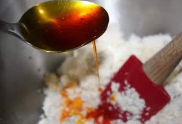 - Ajoutez l’huile de palme rouge et le sel, mélangez bien.
