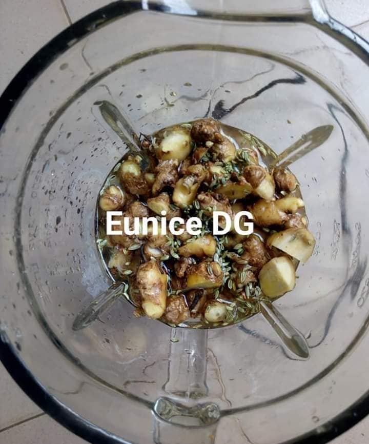 - Écrasez le gingembre avec l’anis et 5 clou de girofle, tamisez et réservez