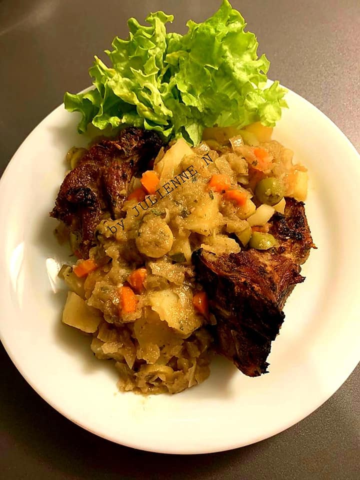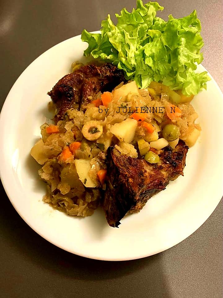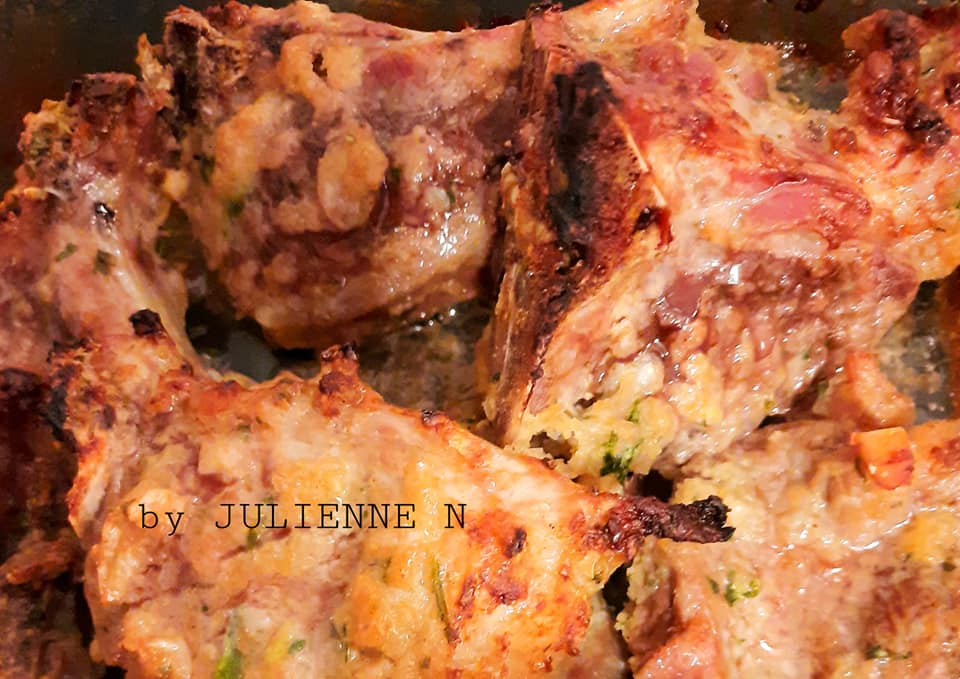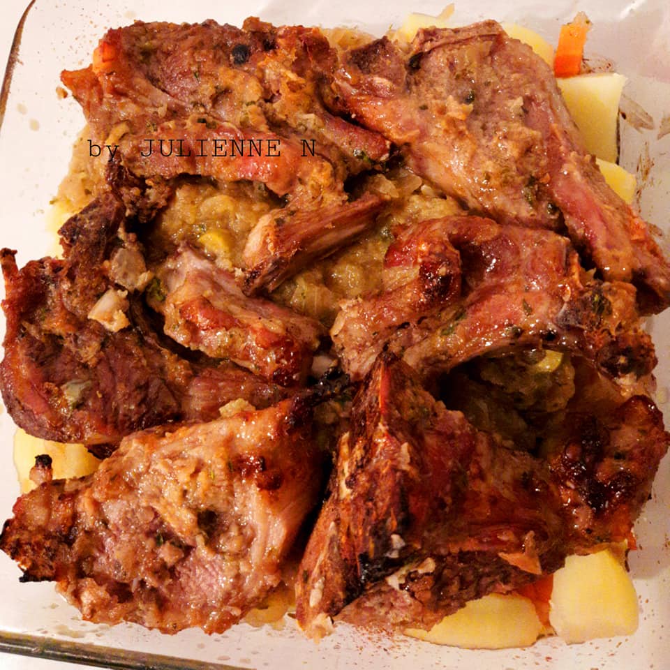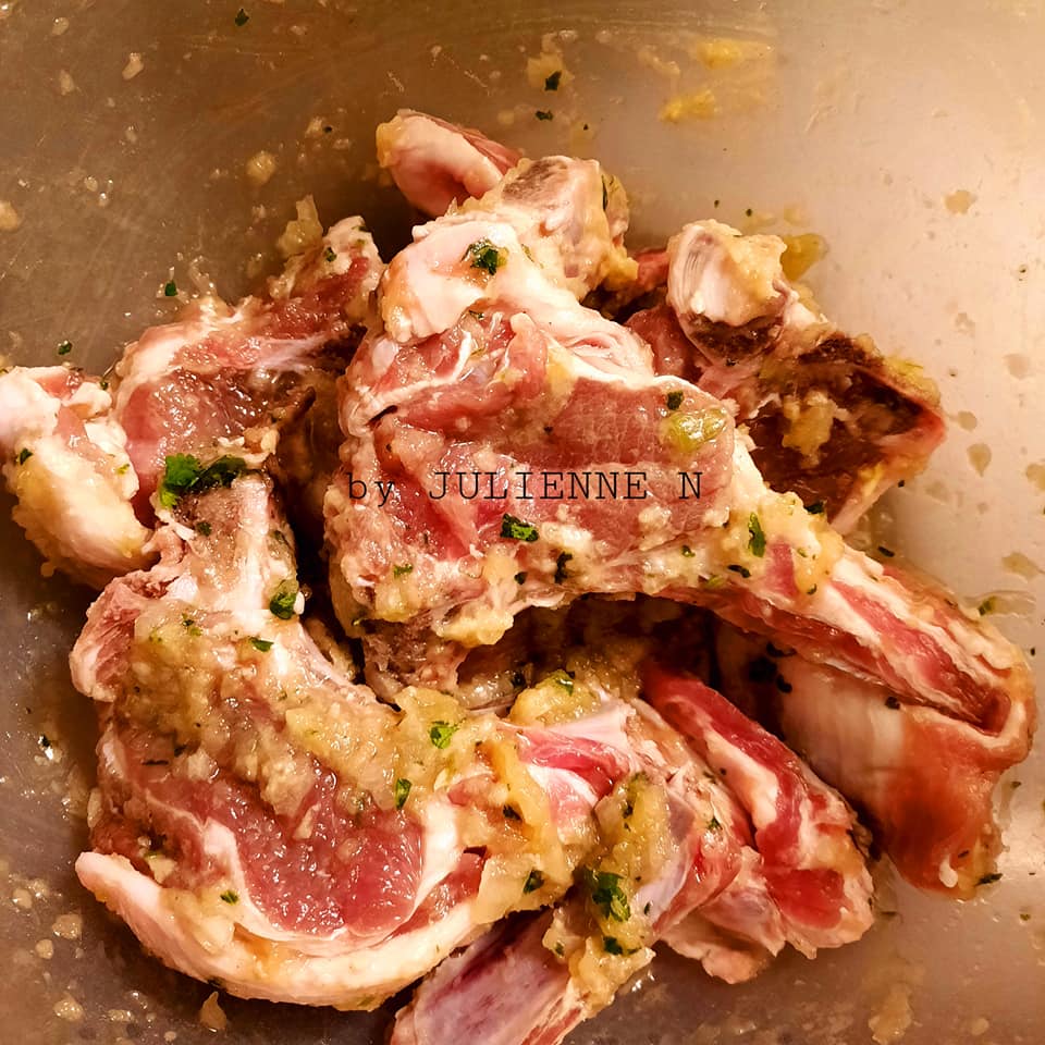 - Prendre 2 cuillères à soupe de ce Hacher de légumes et mariner les côtelettes lavées au préalable avec de l’eau claire. Y ajouter aussi, 1 cuillère à café de moutardes, plus 1 cuillère à soupe de citron jaune et mélanger.