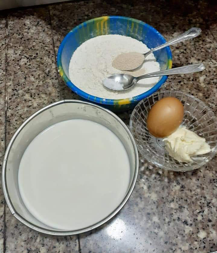 Verser le lait tiède dans votre farine et pétrissez l’ensemble avec le beurre ou l huile. La pate doit être bien souple. Le pétrissage prend moins de 10 min et c’est bon,j’ai rajouté des herbes de Provence a la pâte(facultatif).![]()