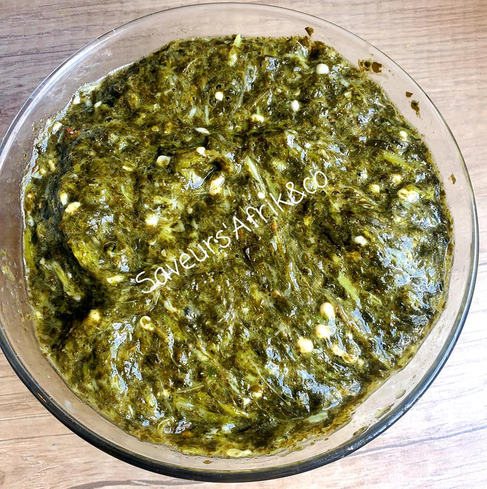 - Laver les feuilles et les faire bouillir, puis le gombo cuit et piler au mortier avec un peu de sel et de jus de citron. C’est prêt.