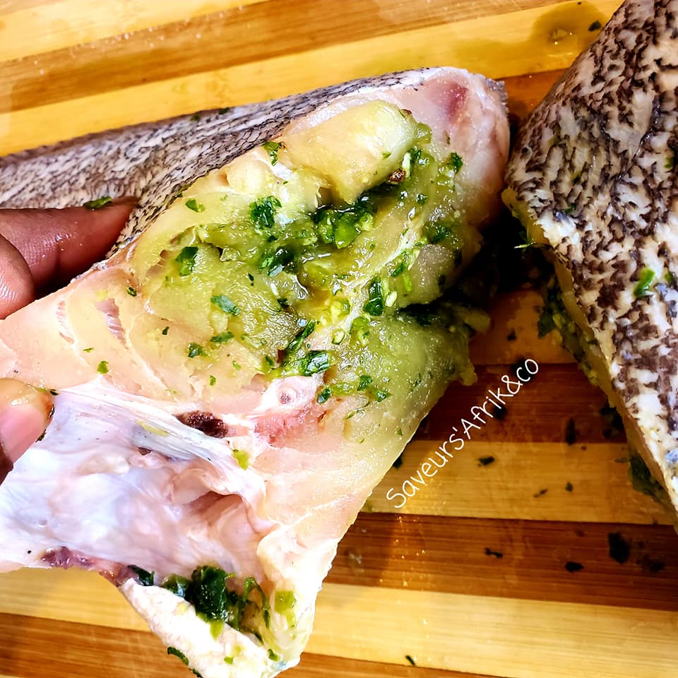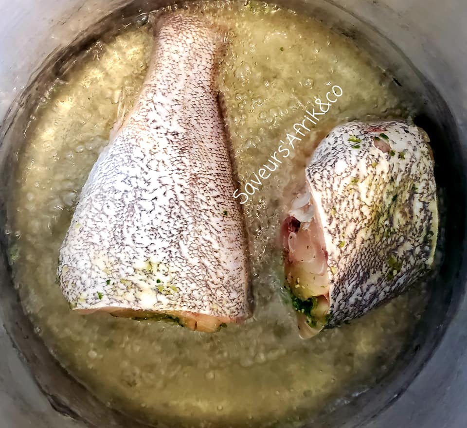 - Bien écailler et nettoyer le poisson (mérou et magni) avec du citron, saler puis réserver, ouis frire.