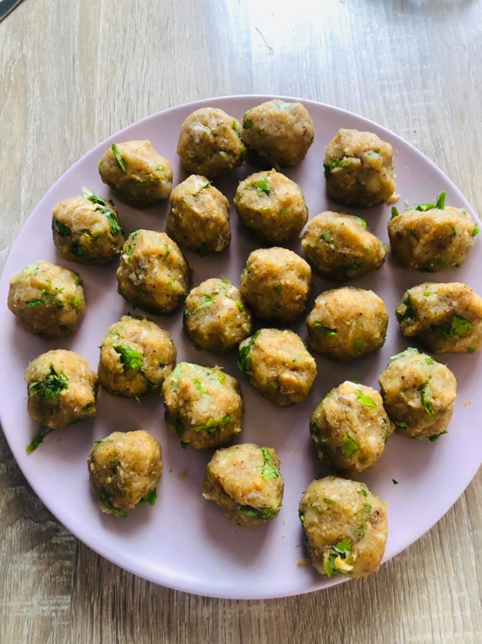 - Former des boulettes et faire frire dans un bain d’huile puis réserver