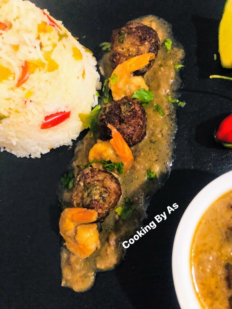- Ajoutez les boulettes et les crevettes et laisser cuire 10 mns votre sauce sera prête