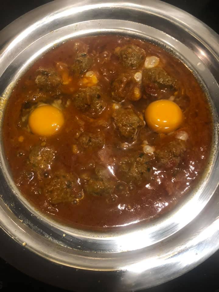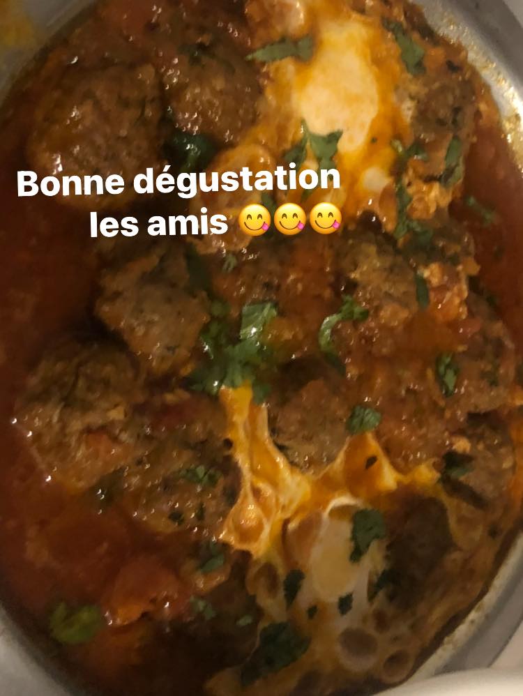- Ensuite faite un peu de place pour les œufs et les mettre dans le tajine refermer et laisser mijoter 5/6 mns l’œuf doit être coulant à l’intérieur